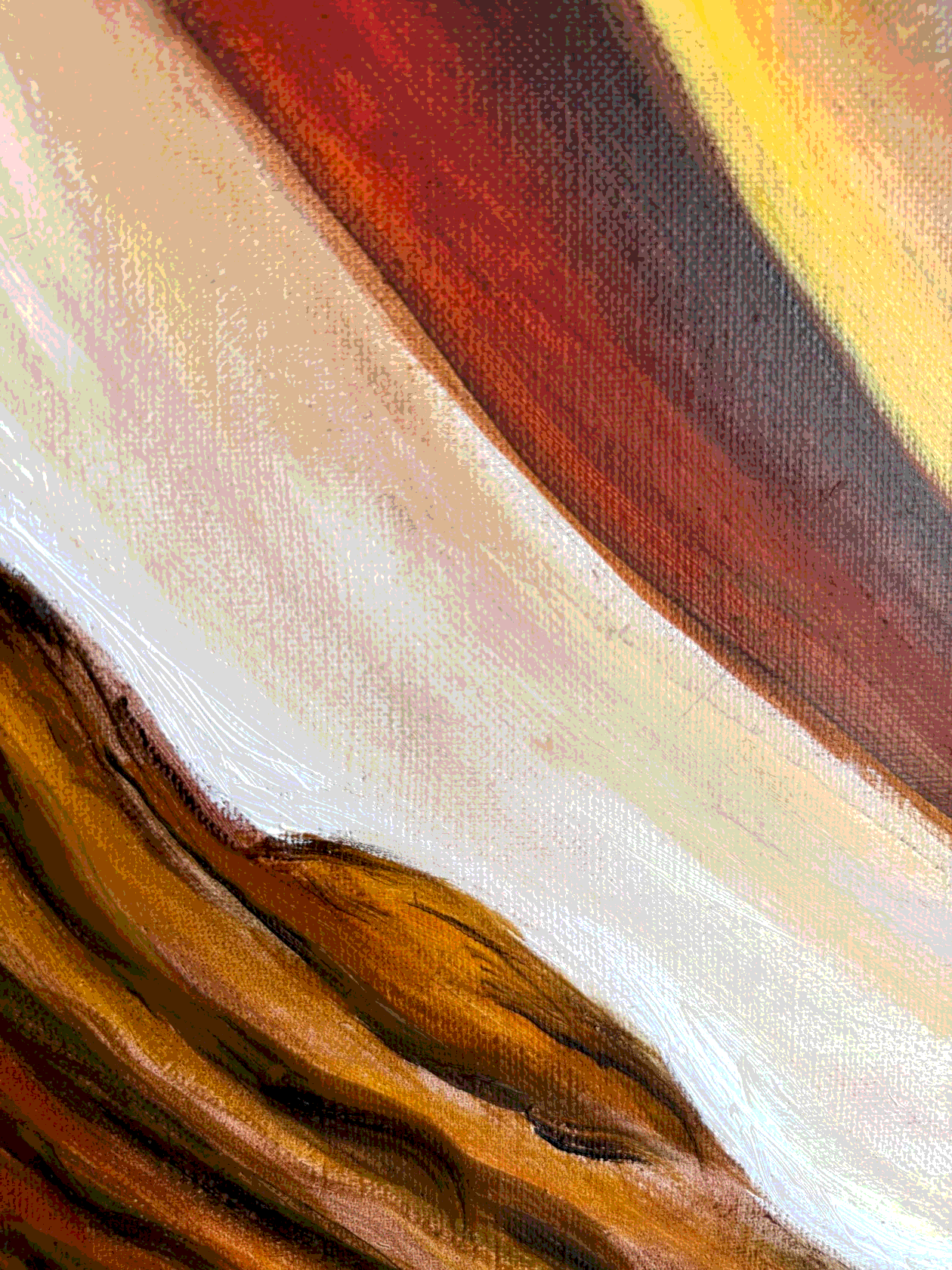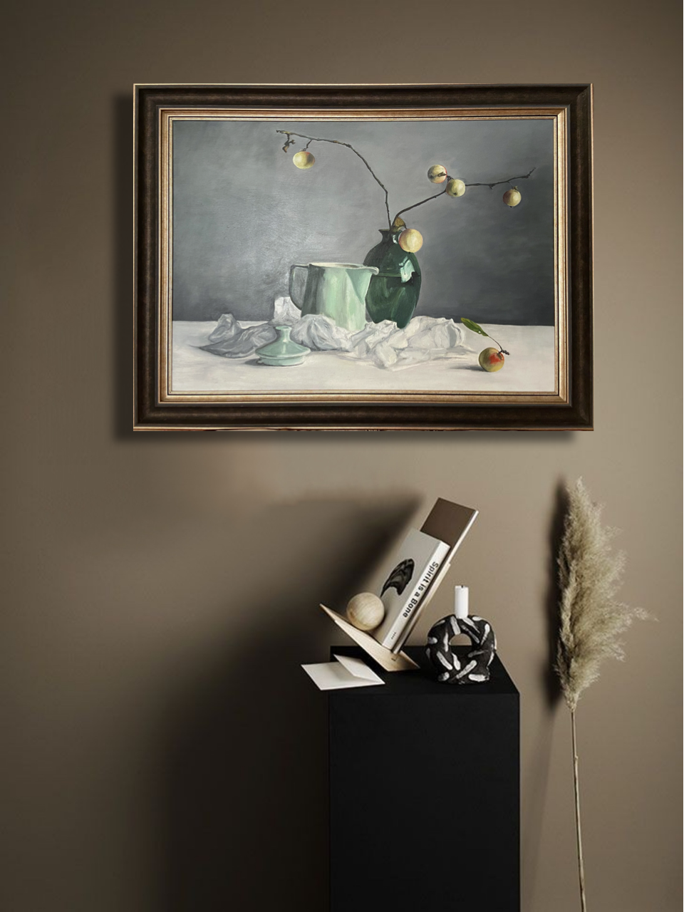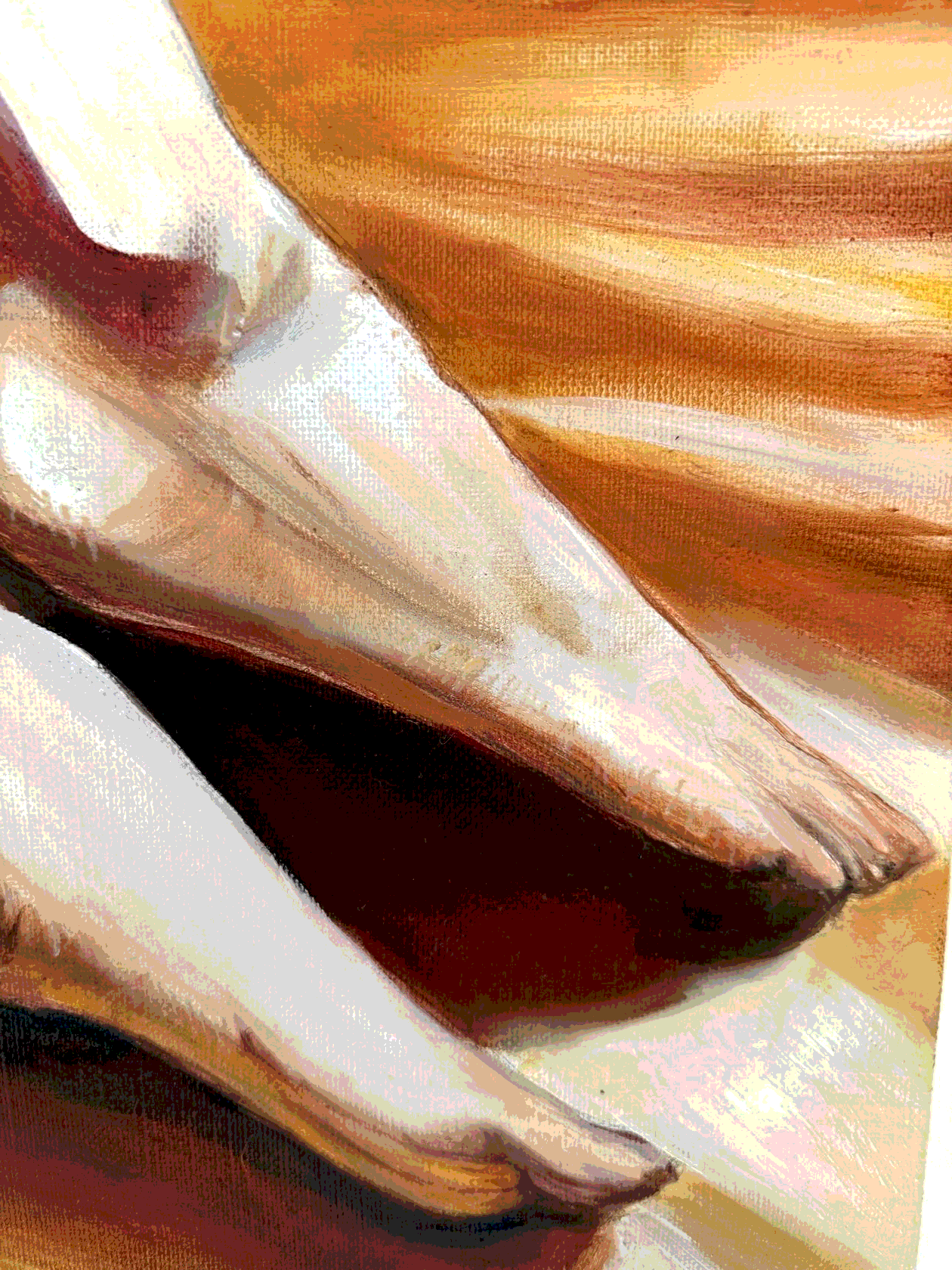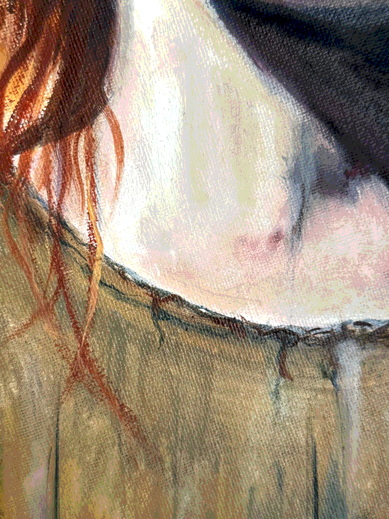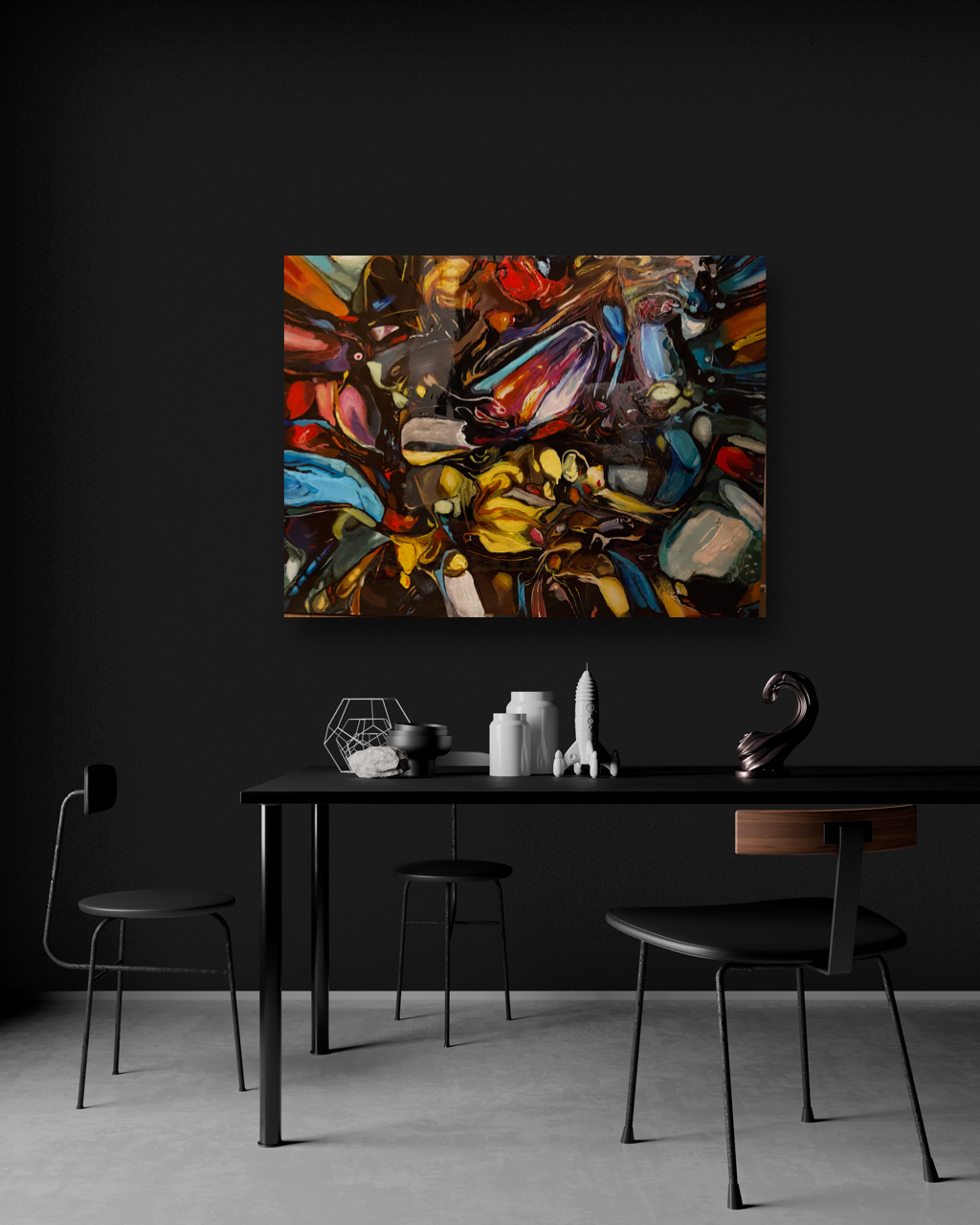 Her paintings are infused with warmth and emotion, featuring expressive faces, dynamic poses, and a subtle play of light and shadow. Symbols of motherhood, childhood, duality, and self-research reveal her inner resilience while inviting viewers into her personal journey. Rare plants, sacred motifs, and echoes of divine grace coexist with intimate self-portraits and solitary figures, bridging the everyday and the transcendent.