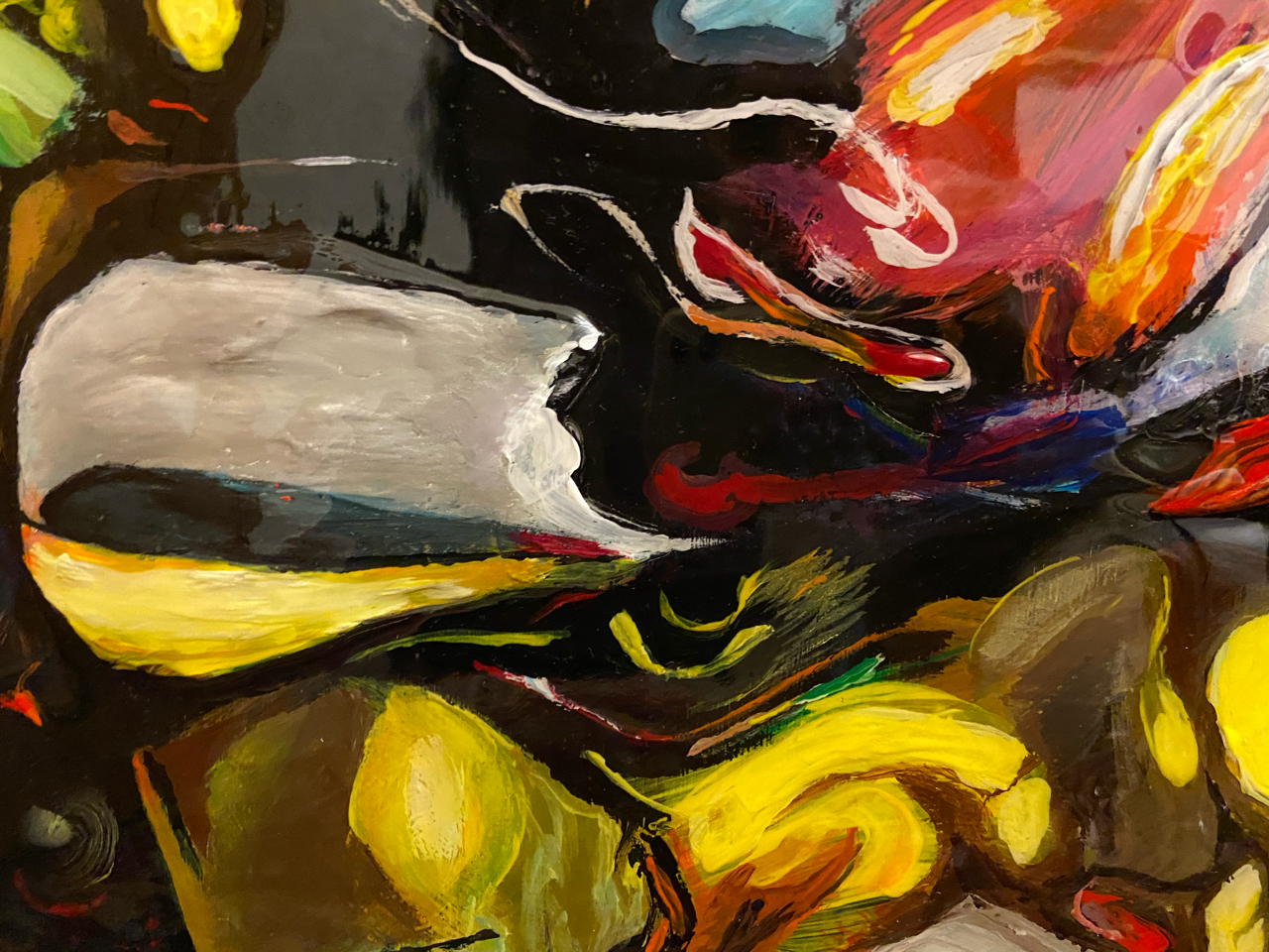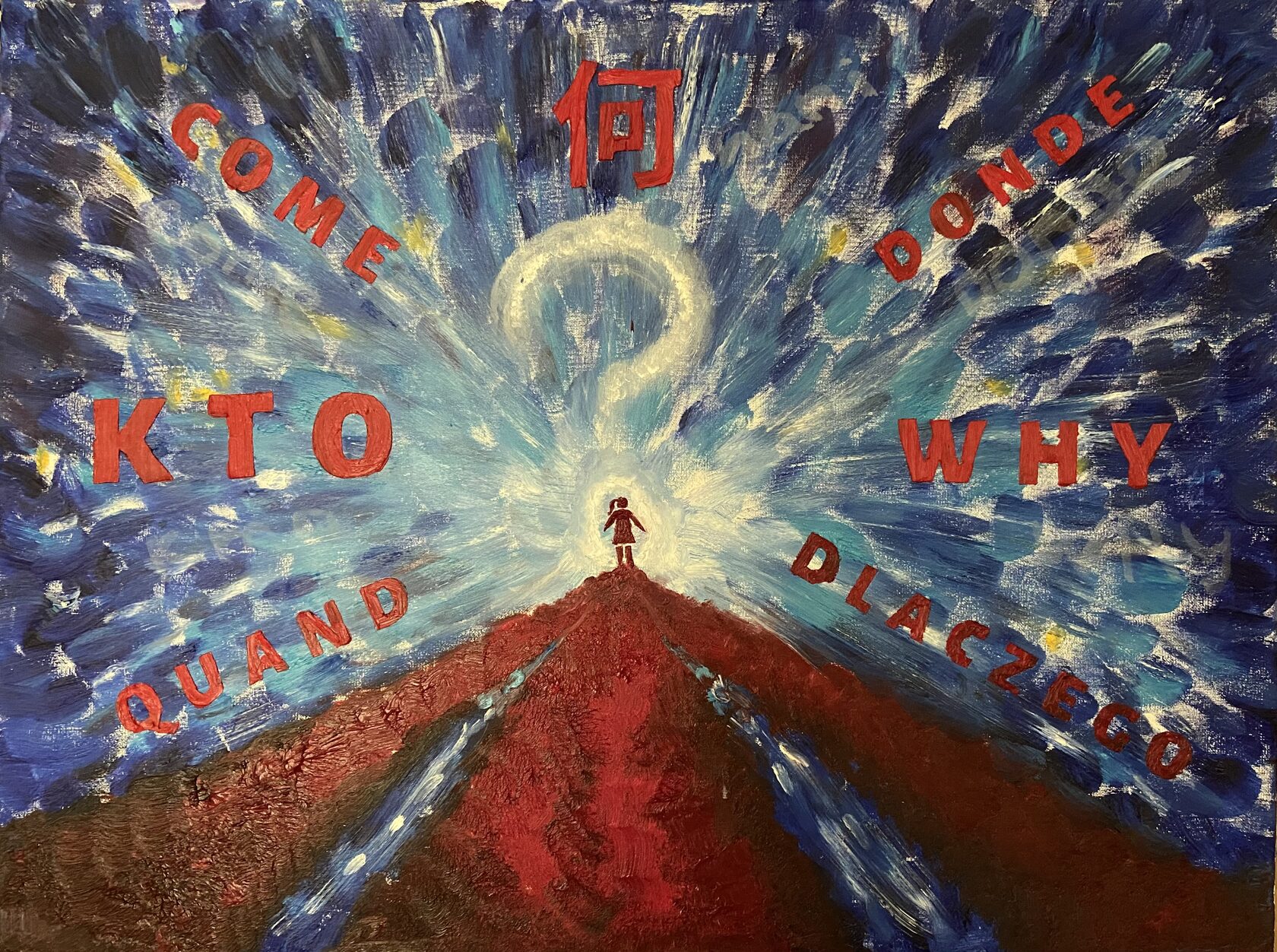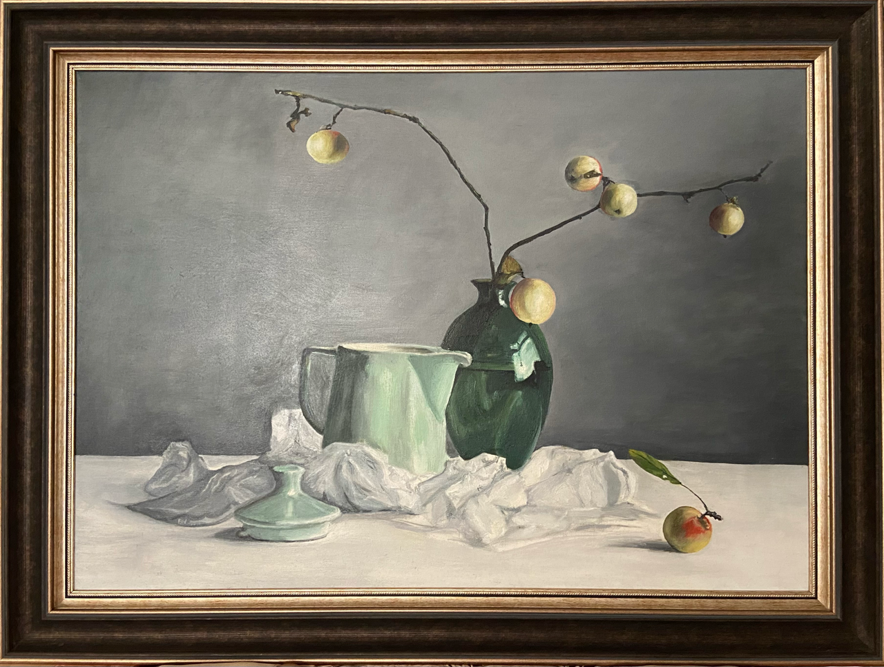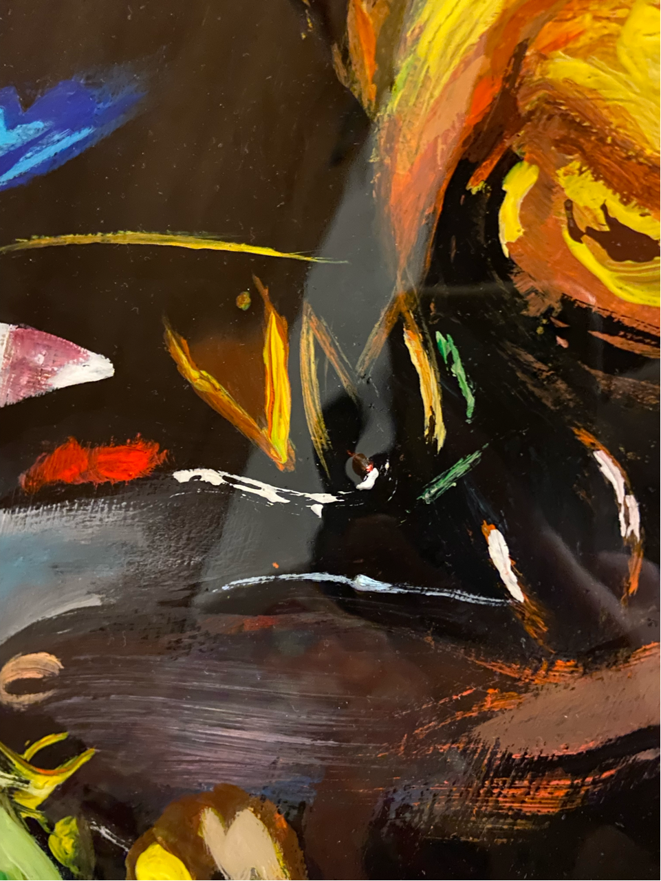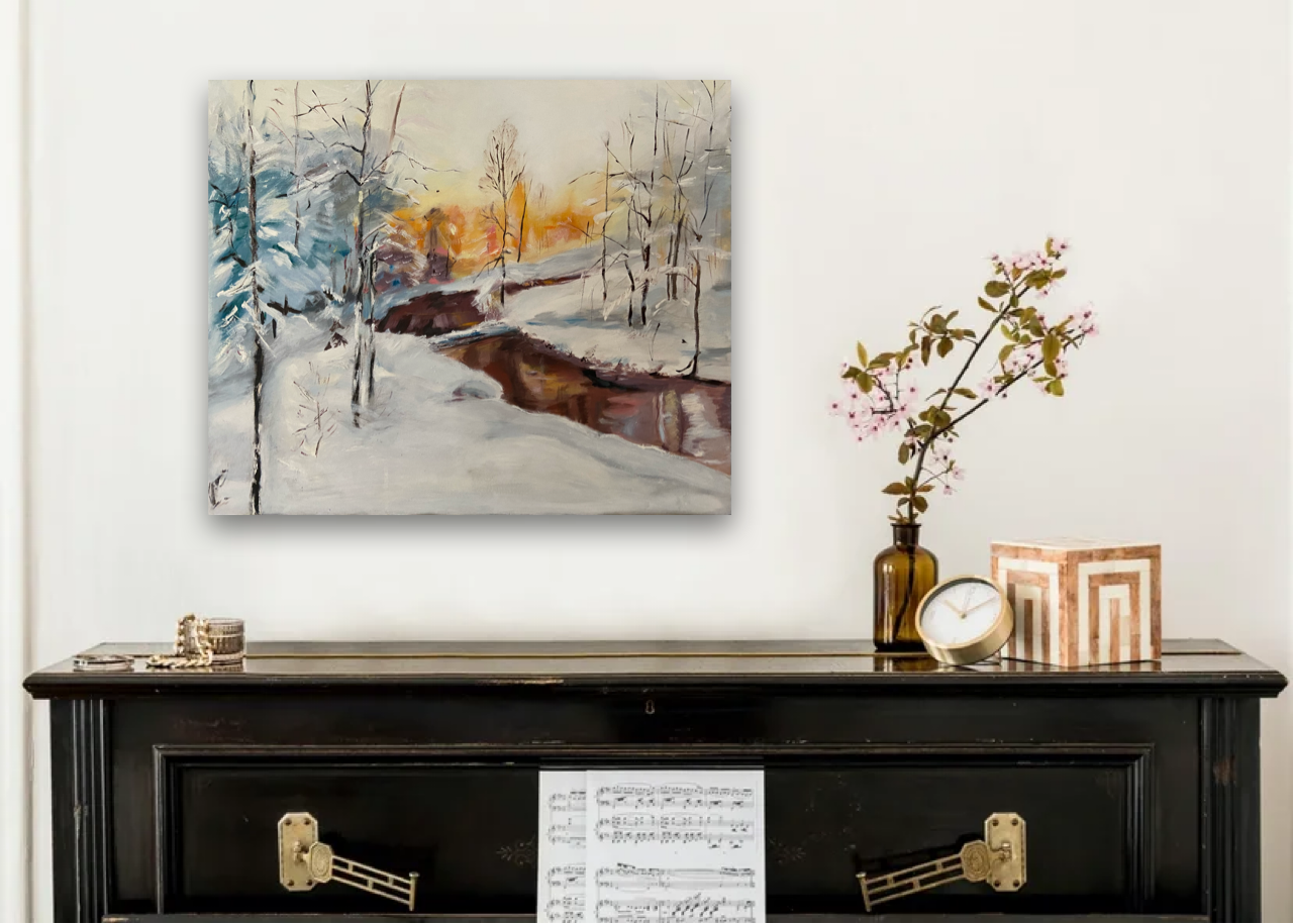Her paintings are infused with warmth and emotion, featuring expressive faces, dynamic poses, and a subtle play of light and shadow. Symbols of motherhood, childhood, duality, and self-research reveal her inner resilience while inviting viewers into her personal journey. Rare plants, sacred motifs, and echoes of divine grace coexist with intimate self-portraits and solitary figures, bridging the everyday and the transcendent.