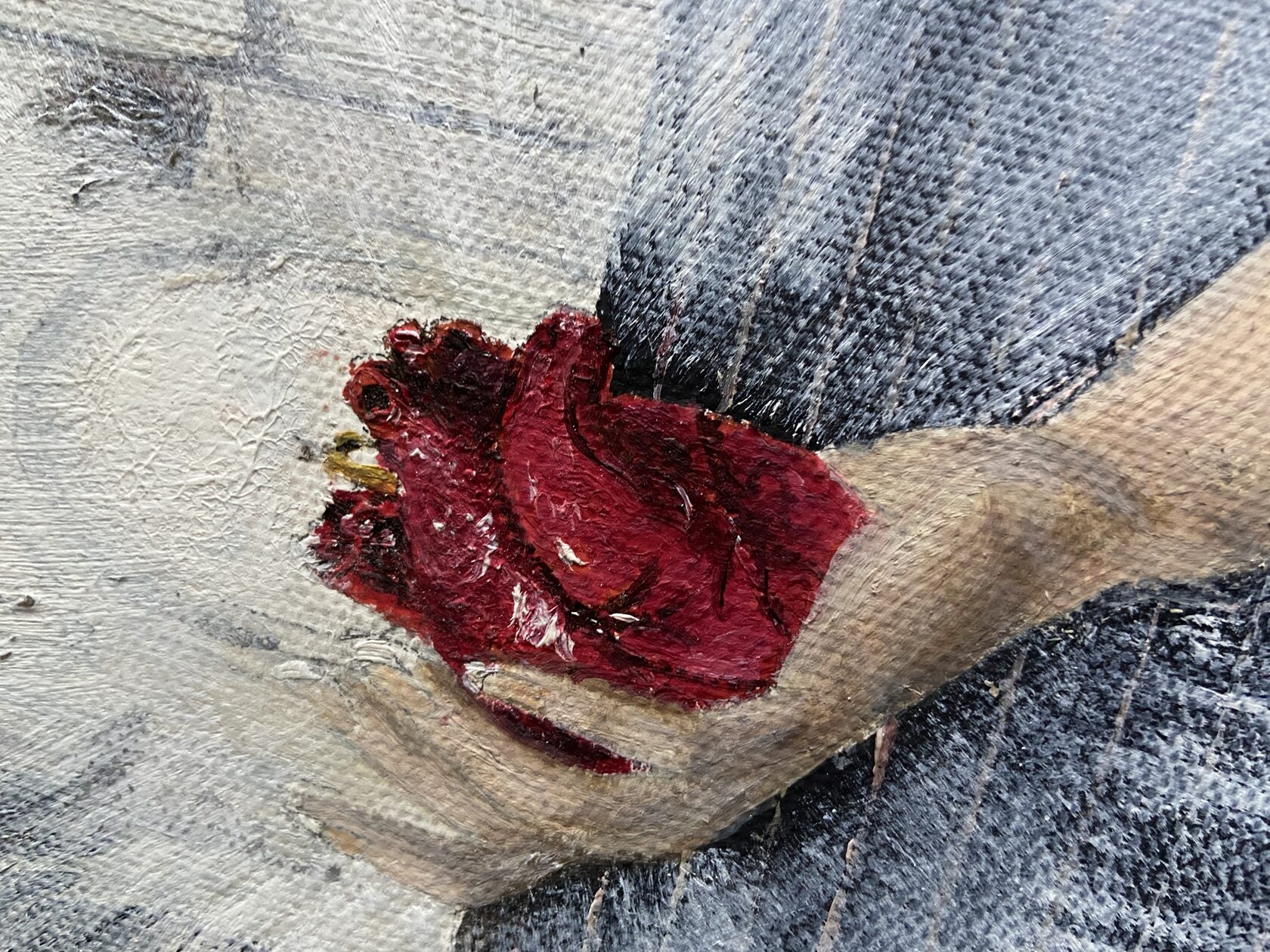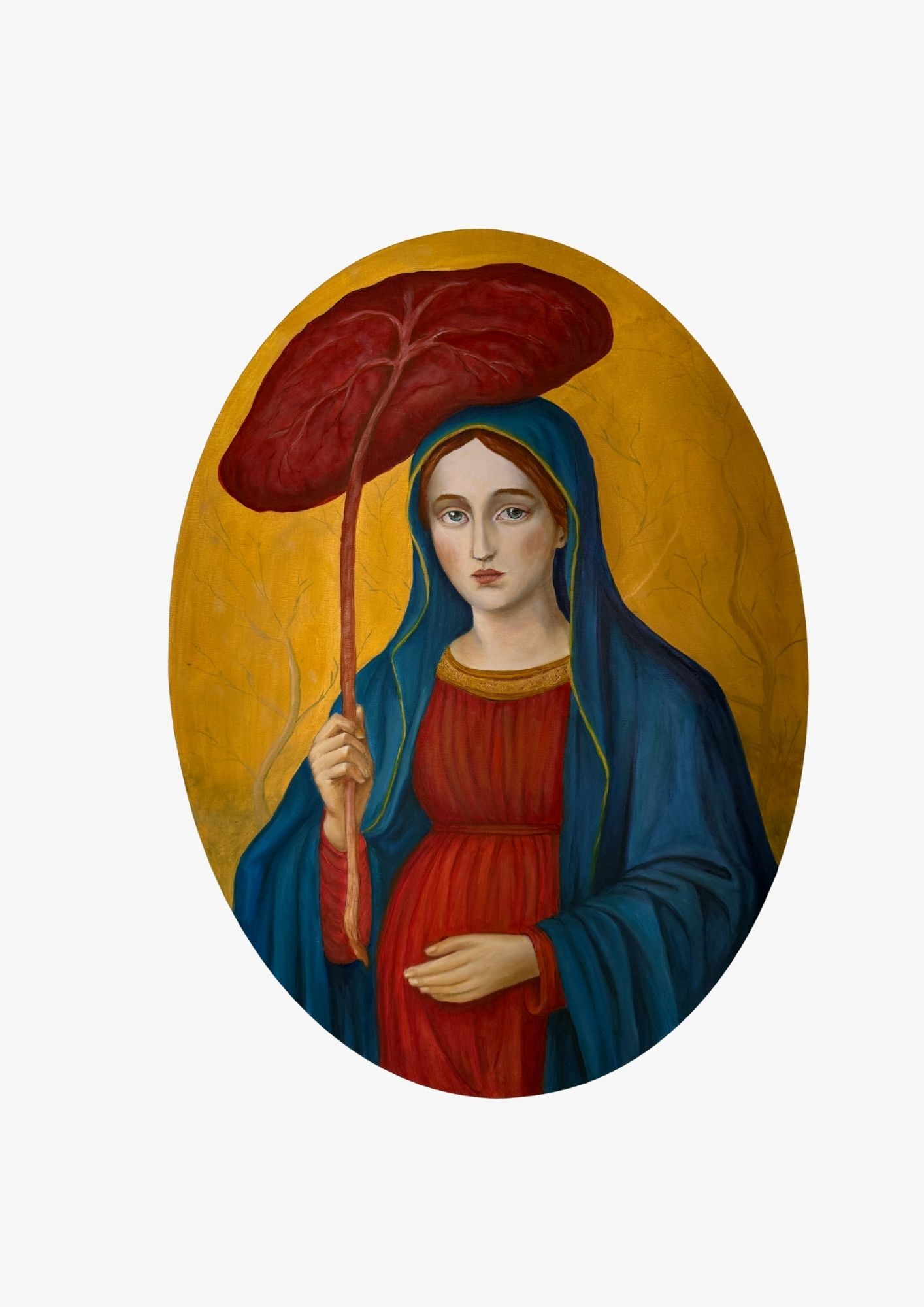 Valeria Morgun is a contemporary artist based in Paris. She studied art history in Moscow, where her dedication to art began and her unique perspective took shape. Borrowing her vocabulary from classical art and religious icons, she weaves hidden symbols and layered meanings into her work, creating visual narratives that demand contemplation.
